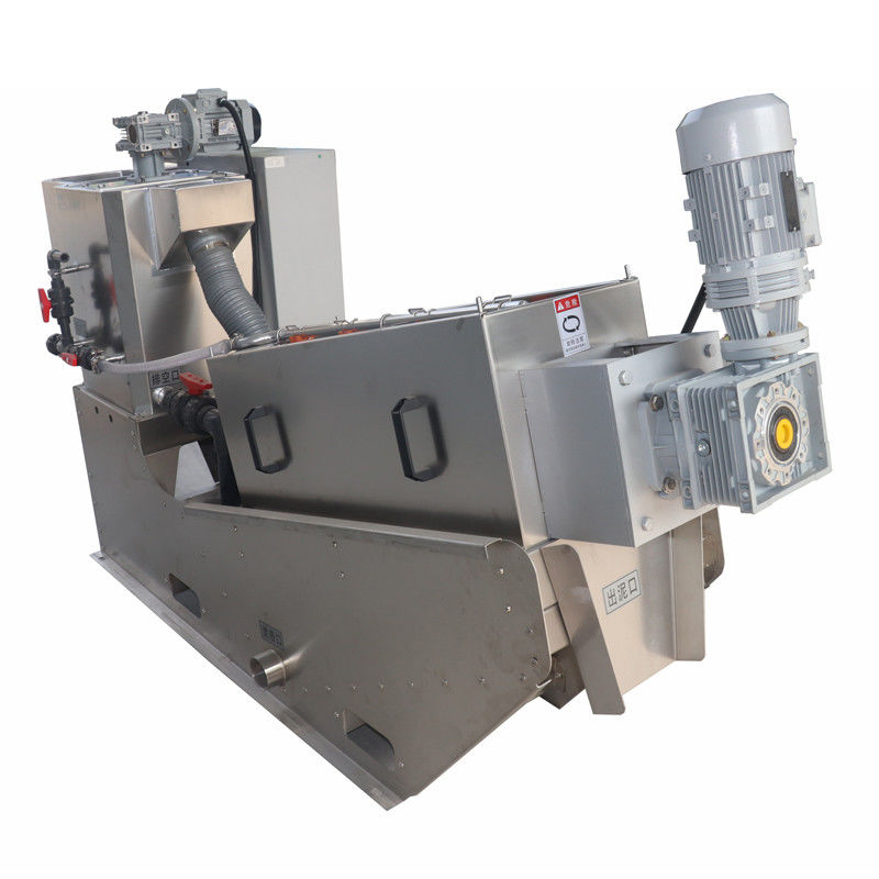 Основной корпус обезвоживателя фильтруя прибор сформированный путем перекрывать фиксированное кольцо и передвижное кольцо, и спиральный вал бежит через их. Небольшой передвижной зазор фильтра сформированный между фиксированным кольцом и передвижным кольцом фильтрует фильтрат, и внутренняя полость сформированная спиральным валом и листом кольца заполнена с флокулировать частицы, который обжат к сжимающей плите обратного давления конца во время торта грязи вращения и форм. Спиральный вал поворачивает и управляет кольцо путешествовать для того чтобы двинуть вверх, вниз, левое и правый непрерывно для того чтобы очистить шов фильтра и предотвратить закупорить.